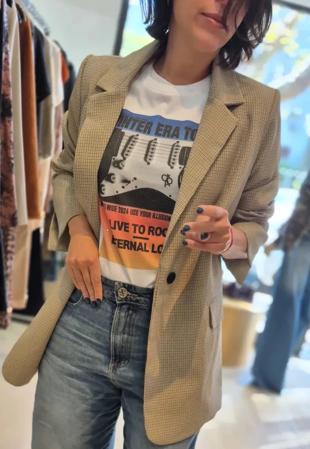 Blazer clasico en principe de gales. Forrado contratono. Cruzado con un boton
